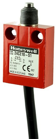 Honeywell’s 24CE Series miniature electromechanical safety switches are designed with a rugged metal housing. This Series features positive opening normally closed contacts to EN/IEC 60947-5-1-3 specifications. Due to their small size and positive opening normally closed contact, the 24CE Series provides a safety solution for applications where the size of other products could be prohibitive on the machinery.