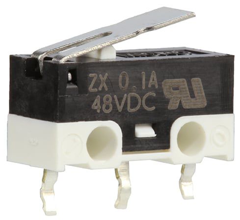 The ZX Series is rated for controlling electrical loads ranging from logic-level/computer-based circuits to limited power-duty switching (up to 3 A/125 Vac). The ZX Series subminiature switch package is available with either solder terminals or a variety of different styles of printed circuit board (PCB) terminals to fulfill the requirements for electrical connectivity.