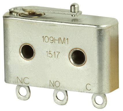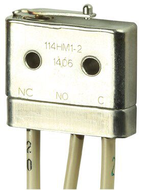 The HM basic switch provides versatility with bifurcated gold contacts for controlling low energy loads (mA and mV) reliably or silver contacts for switching power duty loads at 30 Vdc or 115 Vac, 400 Hz. Electrical connectivity to the switch is achieved with individual wire leads or ̶0:through hole̶1: solder posts adding to the versatility of the HM switch.