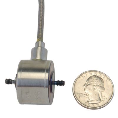 Miniature load cells. Rugged double diaphragm capacity: ≤100 lb: single diaphragm: >100 lb. Male thread attachments