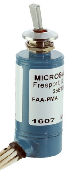 Magnetically held toggle. MIL-S-5594. 7 A max.. Fine silver contacts. Screw, leadwire, and turret terminations