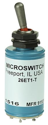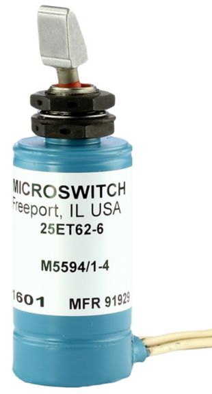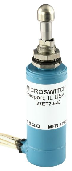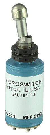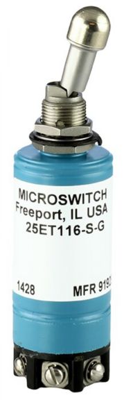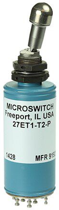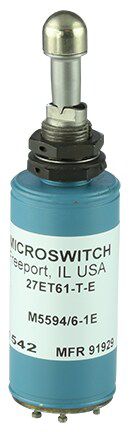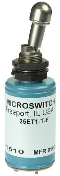 MICRO SWITCH ET Series toggle switches are a specialty type of toggle switch with an electrical latching mechanism. The latching mechanism (internal solenoid in the switch) is designed to hold the momentary switch contacts closed once the toggle switch has been manually actuated. An auxiliary set or remote set of contacts opens the solenoid circuit of the switch and releases the toggle lever mechanism while opening the switch contacts which were held closed.