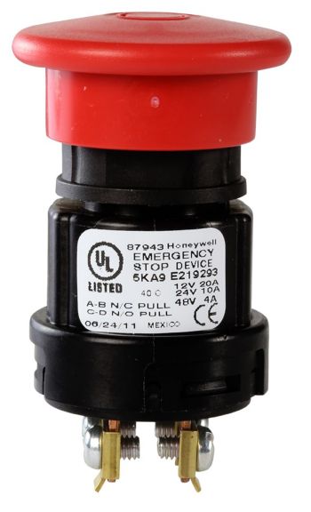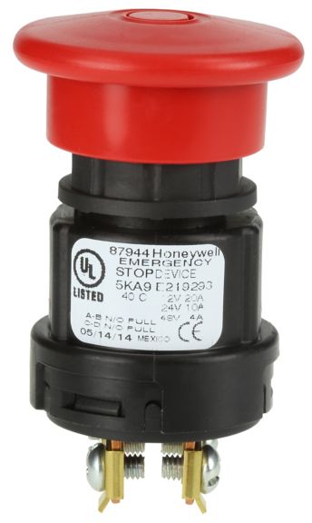 Honeywell's push-pull/e-stop switches are robust, environmentally sealed, sliding contact switches incorporating two circuits with multiple combinations. The sliding contacts provide positive contact closure and opening when the switch knob is operated. Contact closures are available with both circuits closed in the push position, or both circuits closed in the pull position, or alternate closure, one closed and one open. Dual o-ring design protects the contact chamber by isolating it from any moisture or any other contaminant.