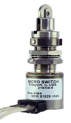 Honeywell MICRO SWITCH EN Series limit switches are bushing mount designed, manufactured, and qualified to MIL-PRF-8805 standards. These products provide a durable switch for commercial and military aircraft as well as commercial and military ground-based equipment. Other applications include off-road equipment where severe environments are encountered. The EN Series of switches have proven to deliver consistent and reliable operation in harsh environments on critical applications for more than 65 years.