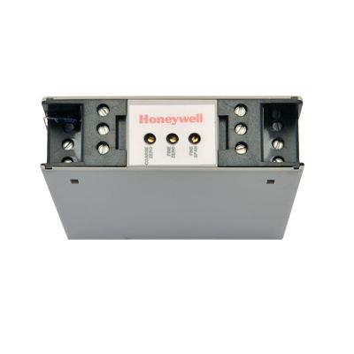 DIN rail mount inline amplifier. ±5 V three-wire output. Front-accessible electrical connections.