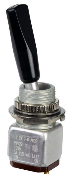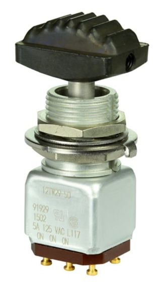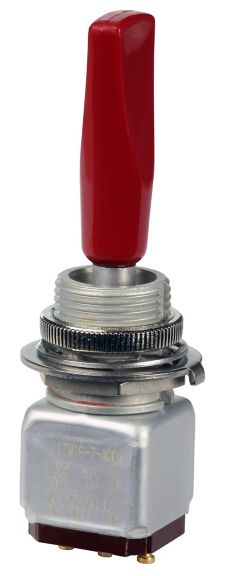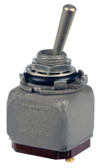 The durable design of the TW Series toggle is well-suited for many military, aerospace and other demanding applications where space behind the panel is limited. These applications include environments where the panels are subjected to mechanical shock, vibration, dust, splashing or hose-directed water, and temperature extremes.