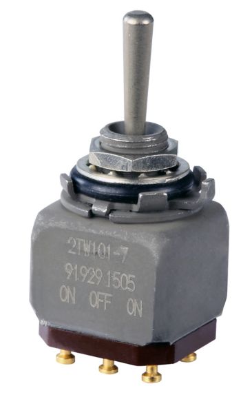 MICRO SWITCH TW toggles feature a miniature military-grade design with environmental sealing capabilities and can be configured with a large selection of circuitries, electrical terminations, lever and bushing designs, and contact material options to satisfy a diverse range of applications.