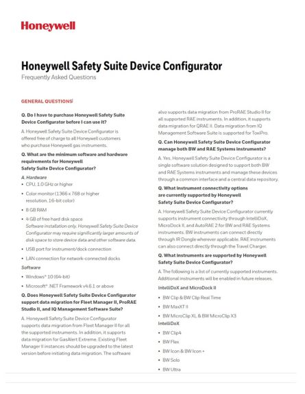 The Honeywell Safety Suite Device Configurator software enables quick and precise management and maintenance of your Honeywell portable gas detector fleet, both RAE and BW product lines.