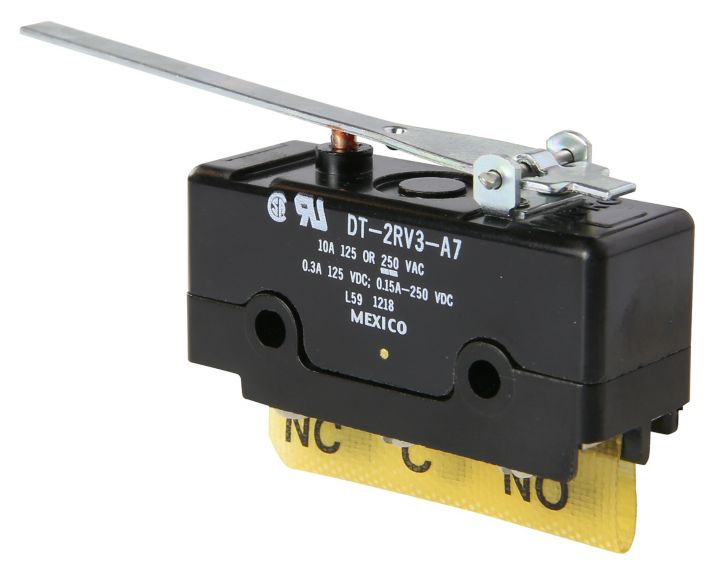 DTシリーズスイッチは、一体型共通アクチュエータによって制御される1つのハウジング内にある2つの独立した単極双投(SPDT)接点で構成されています。DPDTの接点構成により、制御の接点と信号または補助回路に対する異なる接点が提供されます。