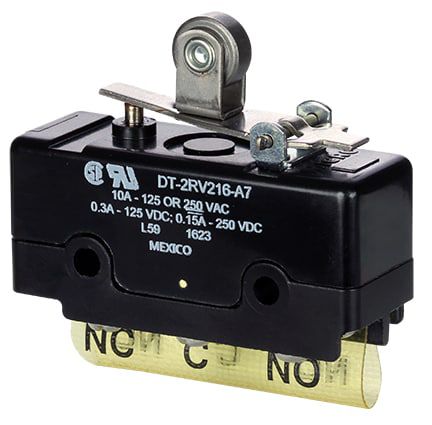 Los interruptores de la Serie DT tienen dos contactos independientes unipolares de doble tiro (DPDT) en una carcasa controlada por un actuador integral común. La configuración de contactos DPDT ofrece un contacto para el circuito de control y otro contacto para la señal o el circuito auxiliar.