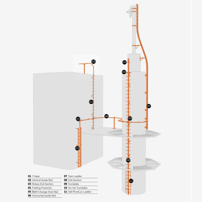 Los kits de sistema de escalera de acceso de altura vertical GlideLoc™ proporcionan una solución innovadora para el ascenso vertical que es fácil de usar, requiere un mantenimiento mínimo y proporciona una seguridad superior. Los kits están disponibles en aluminio, construcción en acero inoxidable o galvanizado.