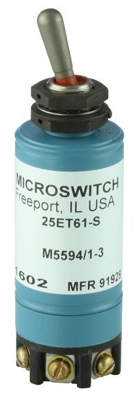 Los interruptores manuales Serie ET MICRO SWITCH son un tipo especializado de interruptor manual con un mecanismo de traba eléctrico. El mecanismo de traba (solenoide interno en el interruptor) está diseñado para mantener los contactos del interruptor momentáneamente cerrados una vez que se acciona el interruptor manual. Un conjunto auxiliar o remoto de contactos abre el circuito de solenoide del interruptor y libera el mecanismo de la palanca manual, al tiempo que abre los contactos del interruptor que estaban cerrados.