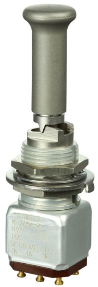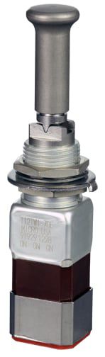 Interruptor manual miniatura de acero inoxidable. UL, MIL-DTL-83781. 0.1 A a 5 A. Variedad de actuadores, acciones, terminaciones y circuitos