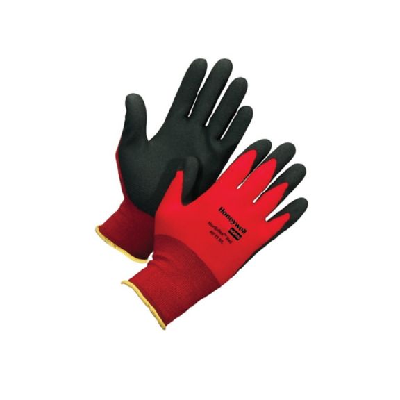 The NorthFlex Red™ - NF11- is a red nylon glove coated in a foamed PVC. The palm dipped PVC coating is soft and flexible for enhanced wearer comfort, yet it is tough and able to withstand harsh abrasion applications. The unique foamed PVC has open surface texture that squeegees liquids from surfaces to enable a firm grip.