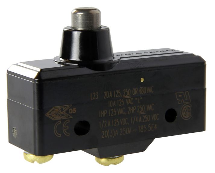 MICRO SWITCH YA Series Standard Basic Switch, Single Pole Normally Open Circuitry, 20 A at 250 Vac, Pin Plunger Actuator, 2,55 N [9.0 oz] Operating Force, Silver Contacts, Screw Termination, UL, CSA, CE, ENEC