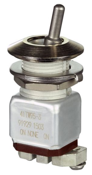 The durable design of the TW Series toggle is well-suited for many military, aerospace and other demanding applications where space behind the panel is limited. These applications include environments where the panels are subjected to mechanical shock, vibration, dust, splashing or hose-directed water, and temperature extremes.